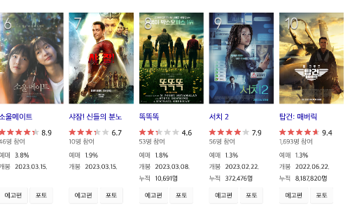 3월 10일(금) 현재 영화 실시간 예매율을 알아보도록 하겠습니다.