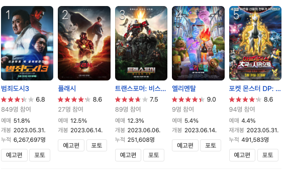 이상, 6월 둘째주 금요일 실시간 예매율 이었습니다 :)